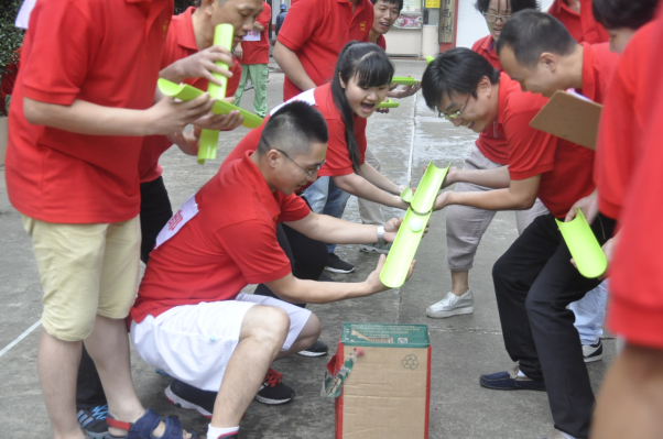 趣味比賽是此次賽事的重頭戲,隨著裁判員的一聲哨響,各代表隊的員工們都鉚足了勁,奮力拼搏,啦啦隊隊員們扯開嗓子,握緊拳頭大聲加油。每個人都在為集體榮譽而戰,比賽現場氣氛緊張而激烈,此次比賽,員工們在賽出水平、賽出風格的同時,也感受到了運動所帶來的巨大樂趣,更重要的是培養了員工們相互幫助,互相配合的團隊精神。